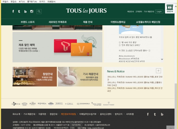 음식 뚜레쥬르.kr 상호 뚜레쥬르(cj푸드빌) 홈페이지주소 뚜레쥬르.kr 페이지 정보 작성자 아이디코리아 댓글 0건 조회 8,368회 작성일 21-01-13 11:12 목록으로 PREVIOUS삼성중공업.kr 21.01.13 NEXT초코파이.한국 21.01.13 본문 Detail view 관련링크 http://뚜레쥬르.kr/ 4630회 연결 목록 댓글 0 댓글목록 등록된 댓글이 없습니다.